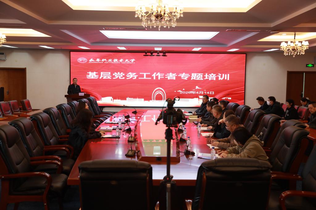 为深入贯彻新时代党的建设总要求,全面提升基层党组织履职能力,破解党建工作重点难点问题,推动学校党建工作提质增效,2026年4月14日,我校举办党务工作者专题培训会。全校各党总支书记、党支部书记及部分支委参加培训。